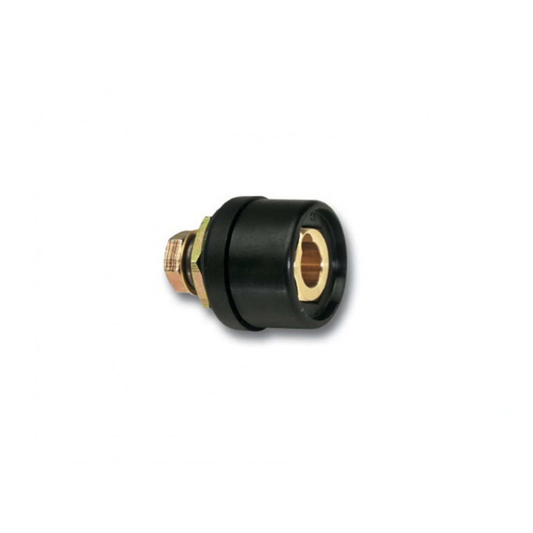 Conector aparat priza 16-25 mm2. Lungime 110mm, curent sudura maxim 200 amperi. Destinat utilizarii cu conectori cablu fisa cu sectiunea de16-25mm2. Diametru gaura de pe panoul aparatului 20mm. Diametrul exterior 32mm.