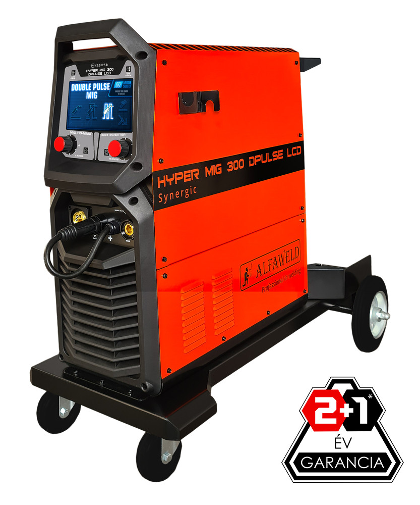 ALFAWELD HYPER MIG 300 DPULSE este un aparat de sudură inverter IGBT, cu afișaj LCD, sinergic, cu funcții PULSE și DUPLA PULSE, pentru MIG, MMA și TIG DC cu aprindere prin arc Lift. Funcția MIG permite sudarea cu și fără gaz protector (fir cu pulbere) și sudarea materialelor din aluminiu.